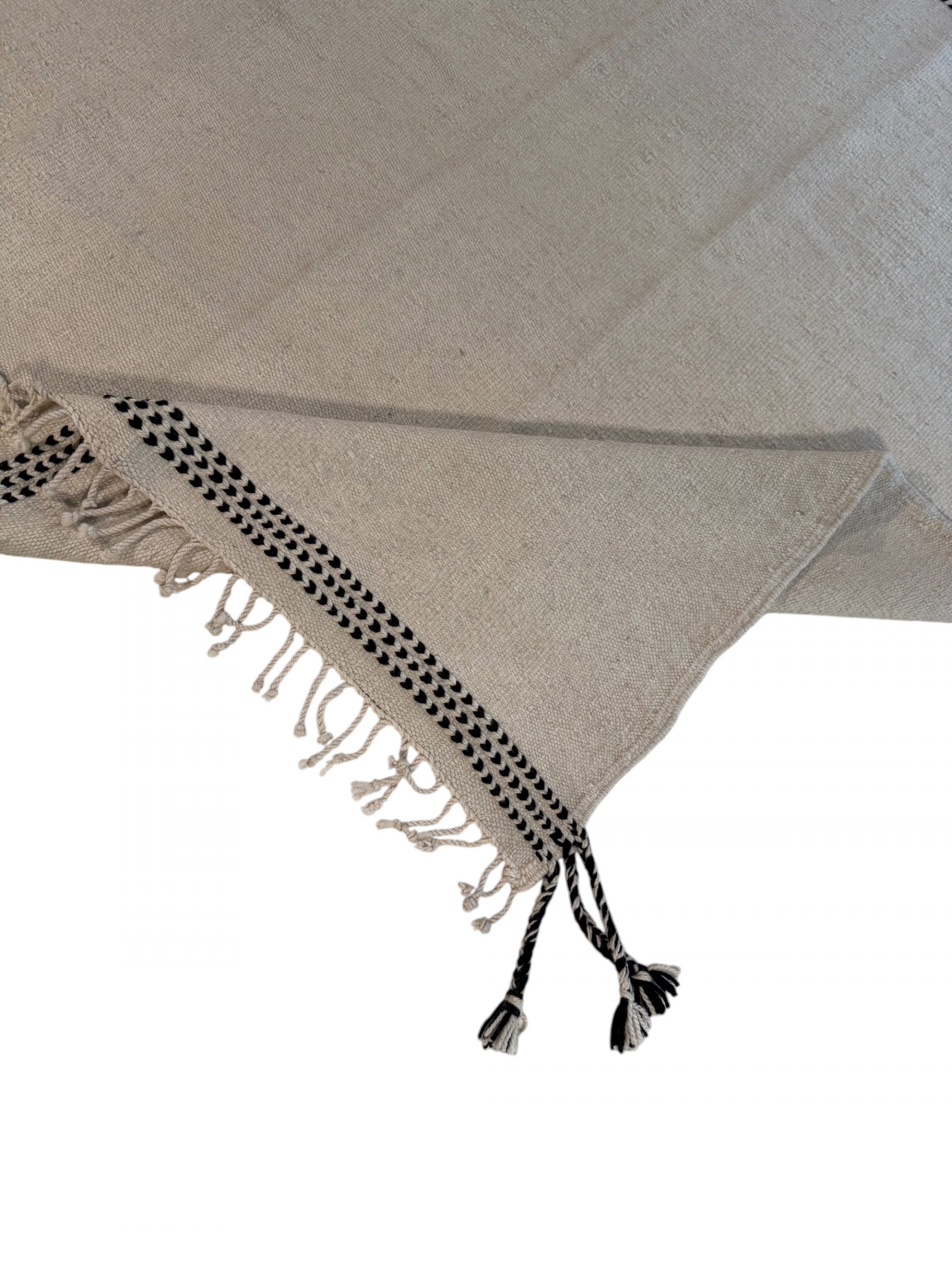 Jeder Afaq Kelim wird vollständig von Hand gefertigt. Deshalb ist jeder Teppich ein Unikat. Kleine Variationen im Gewebe oder in der Farbintensität sind typisch für handgearbeitete Textilien und verleihen dem Teppich seine individuelle Ausstrahlung. Diese Details erzählen von der handwerklichen Herstellung und machen den besonderen Charme eines echten Berber Kelims aus.
