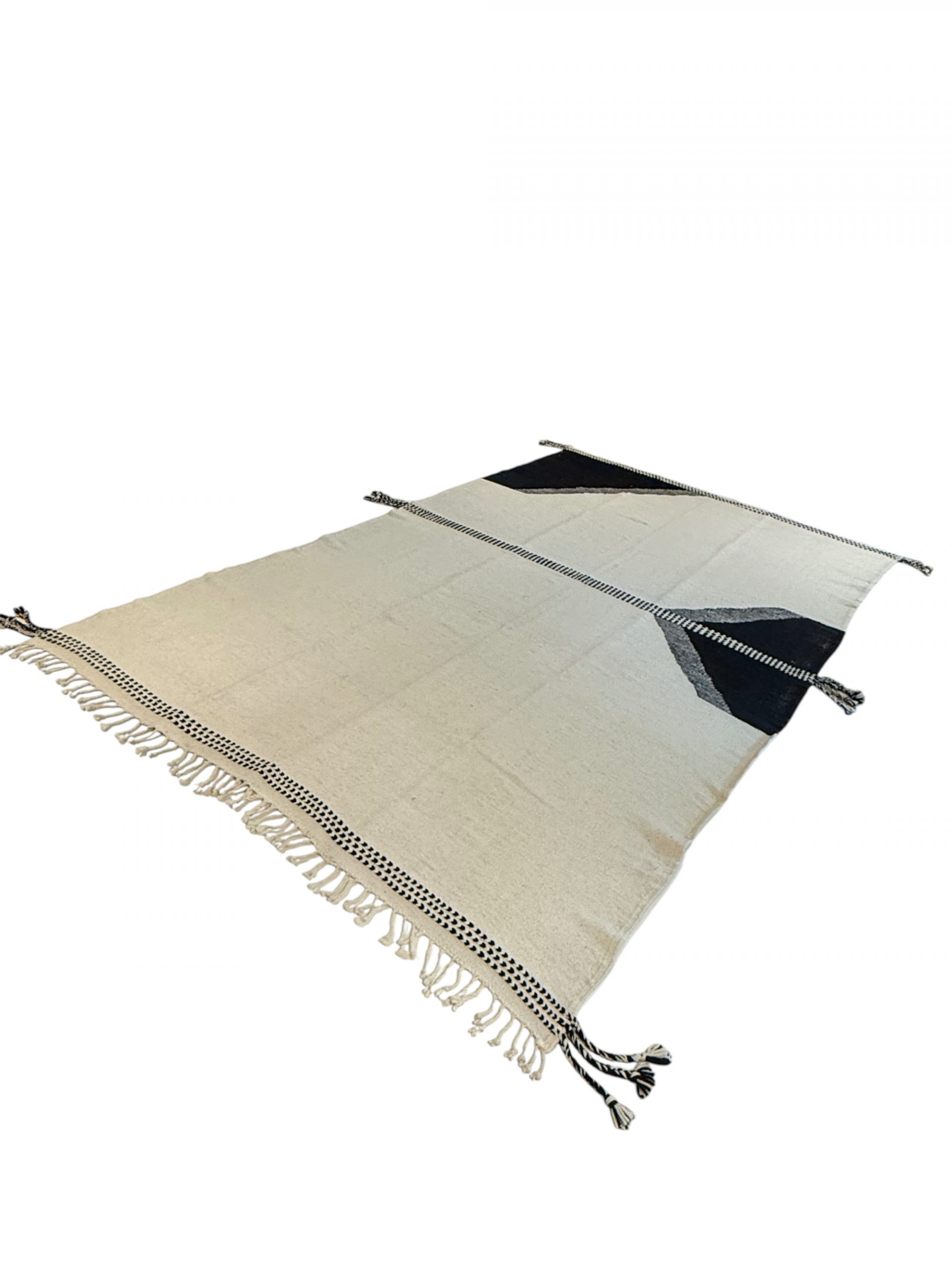 Der Afaq Kelim ist ein handgewebter Berber Kelim aus hochwertiger Atlas Wolle und steht für die Verbindung aus traditioneller Handwerkskunst und modernem Design. Gefertigt wird dieser besondere Teppich von erfahrenen Weberinnen in den Berberregionen des Atlasgebirge in Marokko. Dort hat die Kelim-Weberei eine lange Tradition, die über Generationen weitergegeben wird.