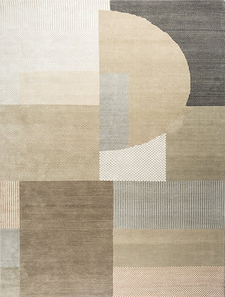 Das grafische Muster erinnert an ein abstraktes Labyrinth und spielt gekonnt mit geometrischen Formen, Linien und Flächen. Sanfte Beige-, Grau- und Naturtöne sorgen für eine ruhige, ausgewogene Wirkung und lassen sich mühelos in unterschiedliche Einrichtungsstile integrieren – von modernem Minimalismus über zeitgenössisches Interior bis hin zu eleganten Wohnkonzepten. Die Bambusseide verleiht dem Teppich dabei einen feinen, seidigen Glanz, der je nach Lichteinfall subtil changiert und dem Design zusätzliche Tiefe verleiht.