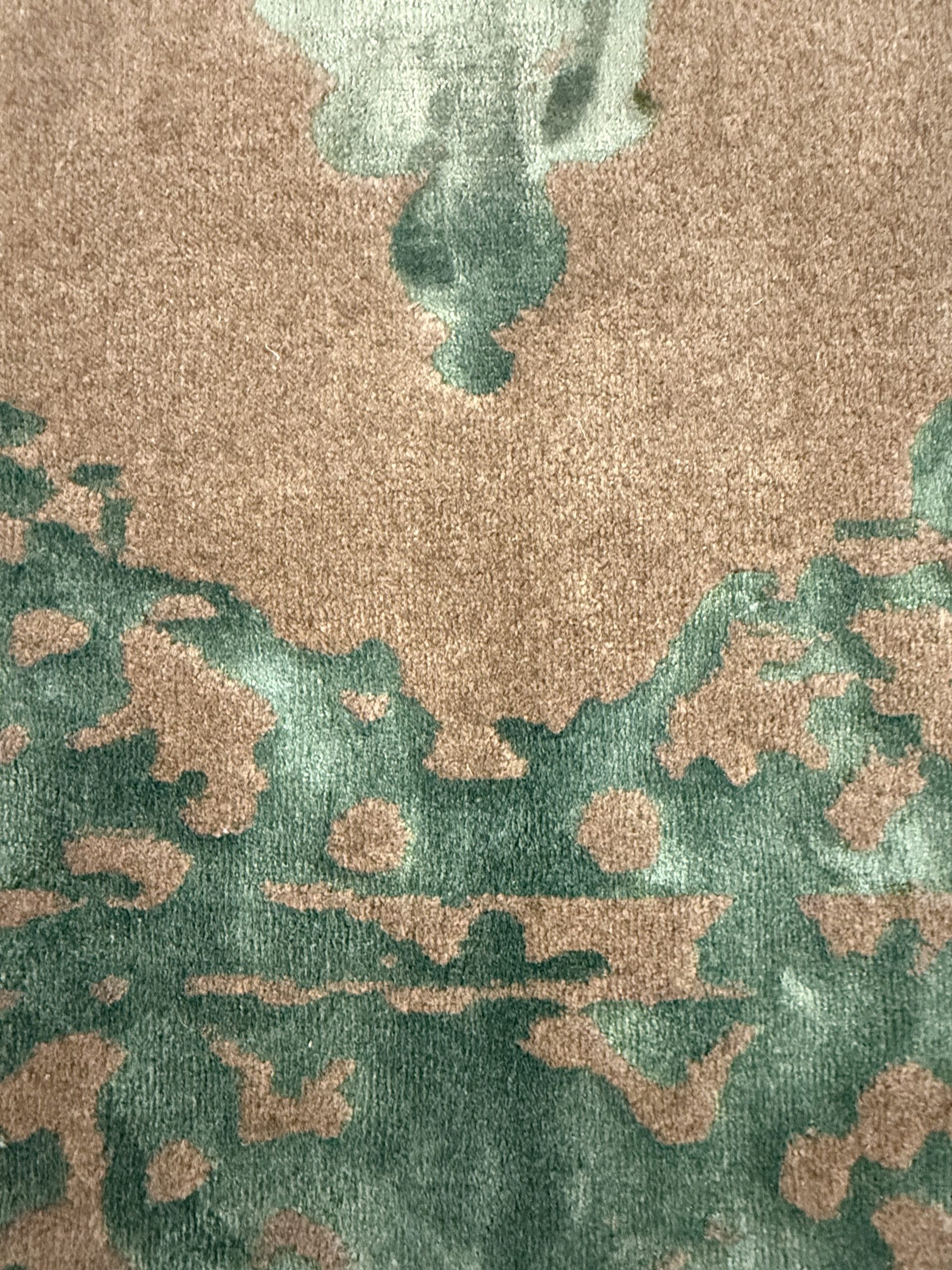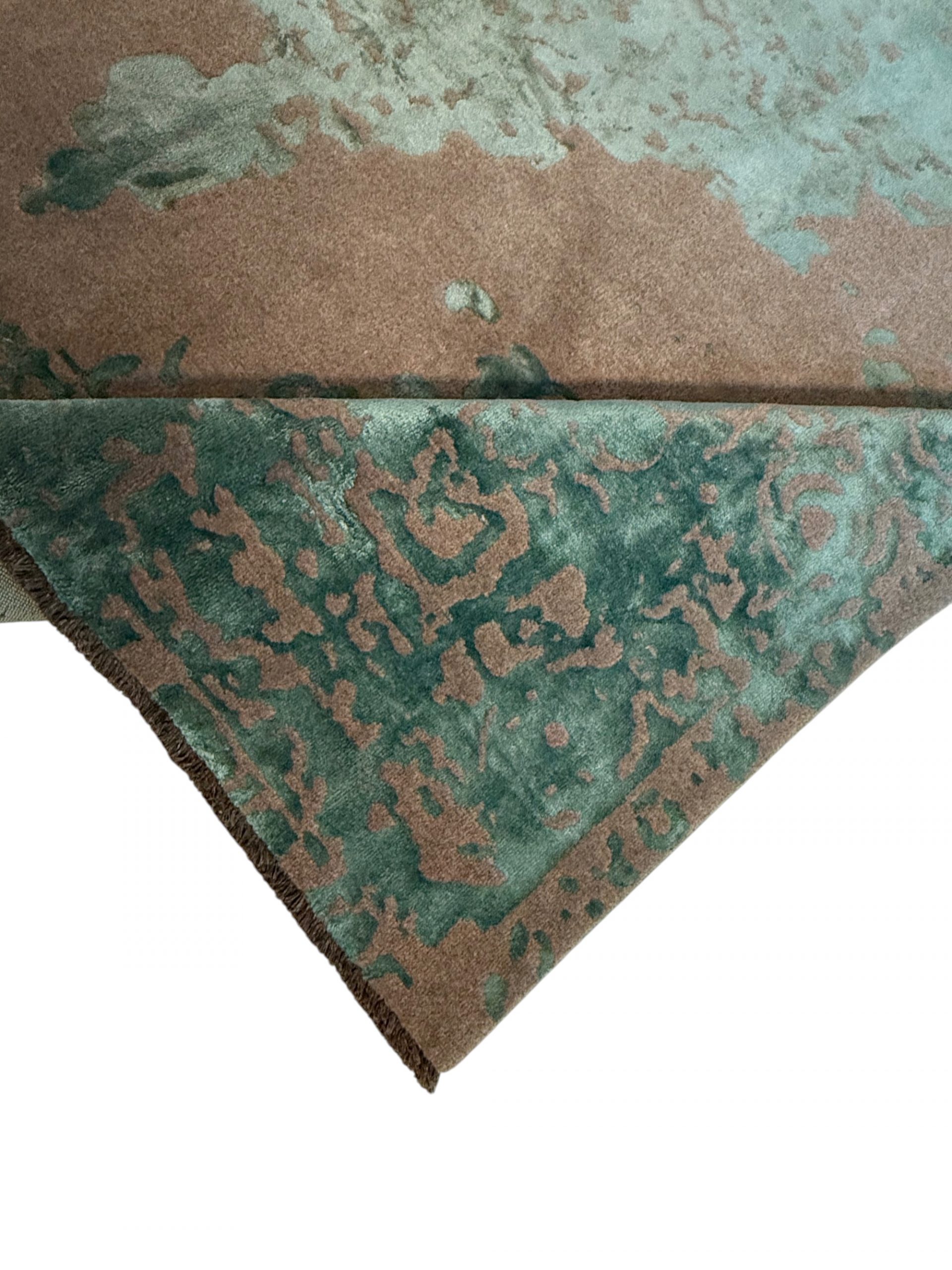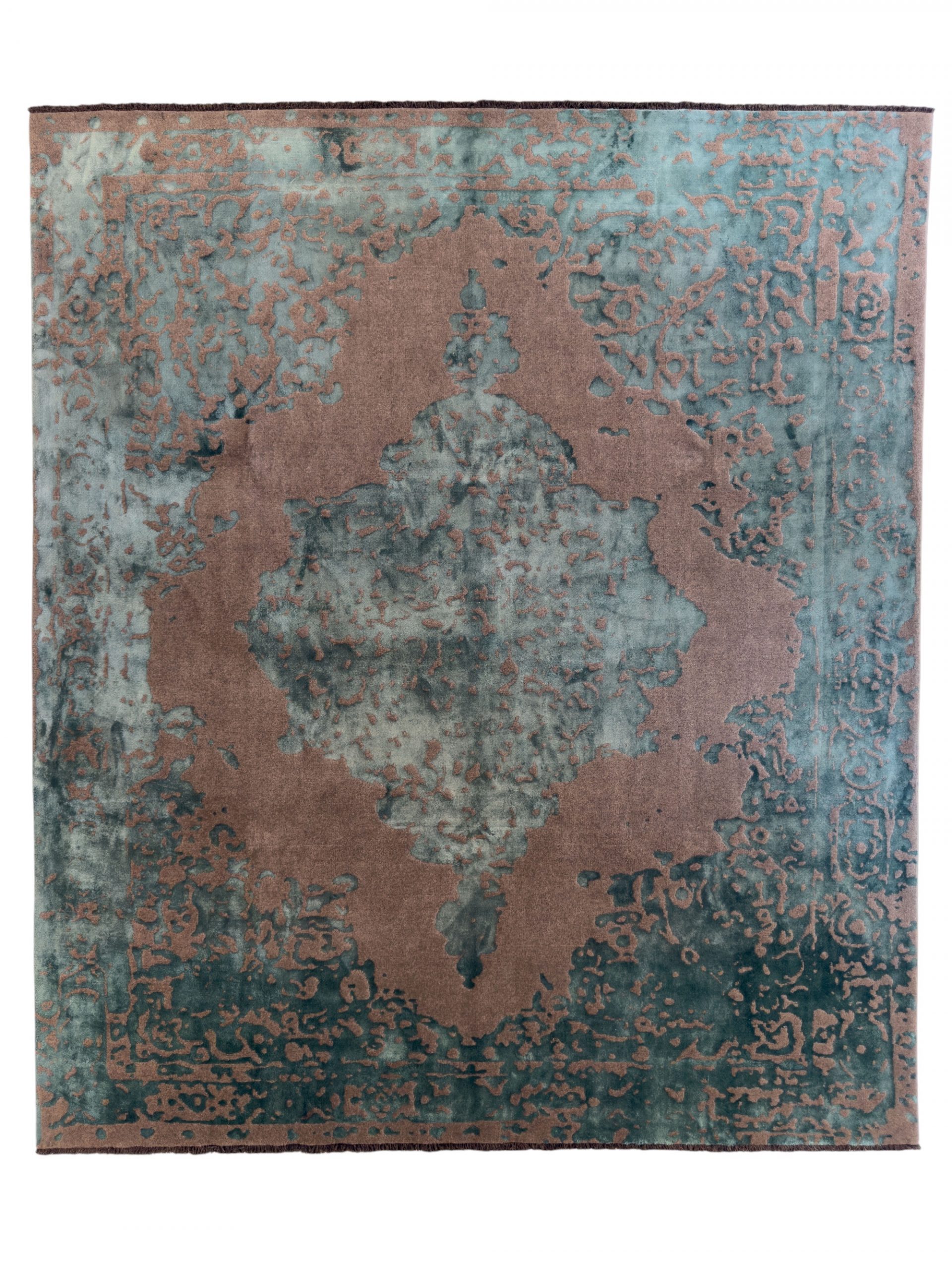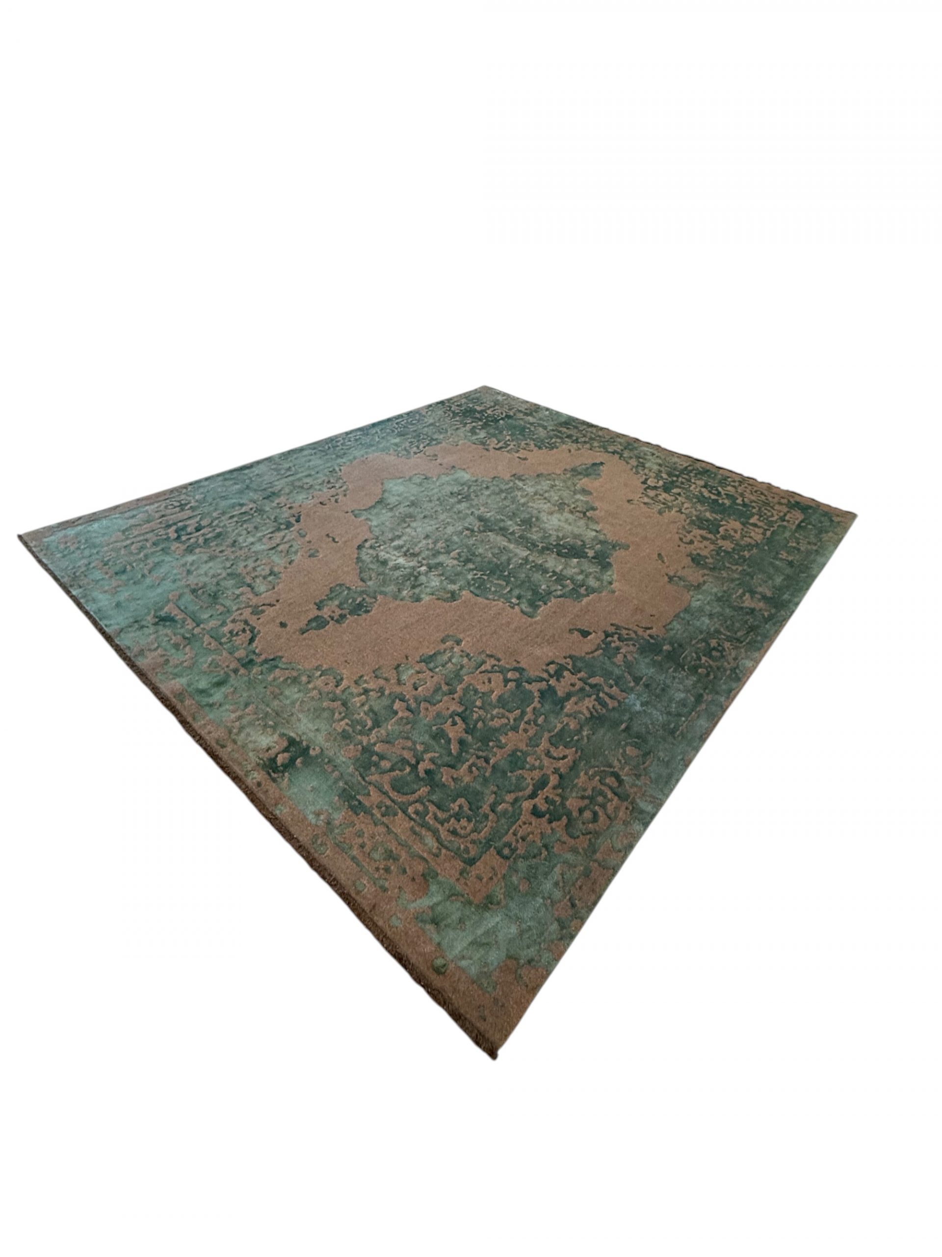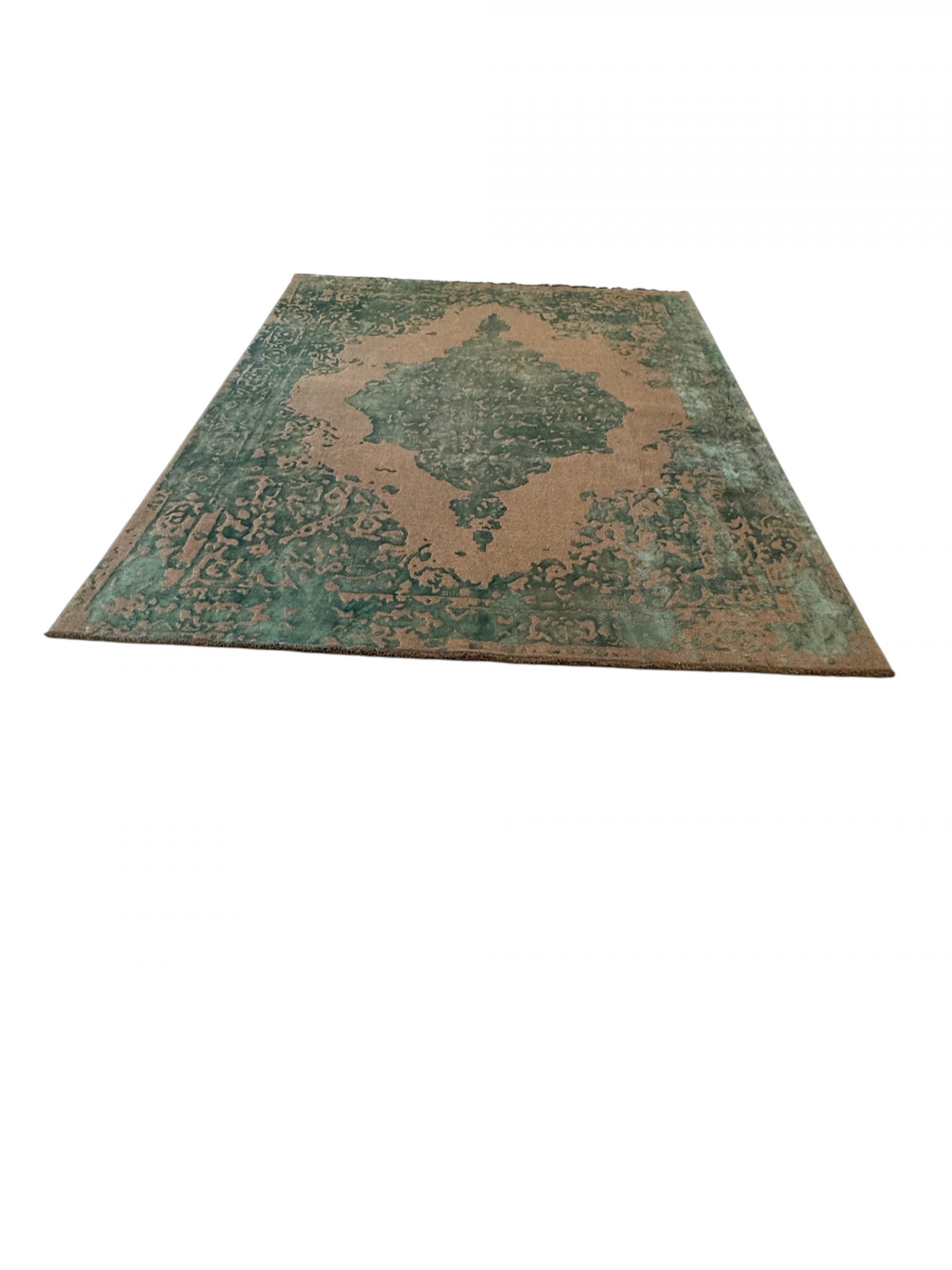 Das Design des Teppichs orientiert sich an klassischen orientalischen Mustern, die modern interpretiert wurden. Die Ornamentstruktur wirkt bewusst leicht reduziert und erzeugt gemeinsam mit dem dezenten Vintage-Effekt eine elegante, zeitlose Optik. Besonders harmonisch wirkt dabei das Farbspiel aus tiefem Dunkelgrün und warmem Aschbraun. Diese Kombination verleiht dem Teppich eine ruhige und zugleich edle Ausstrahlung, die sich hervorragend in viele Einrichtungsstile integrieren lässt.