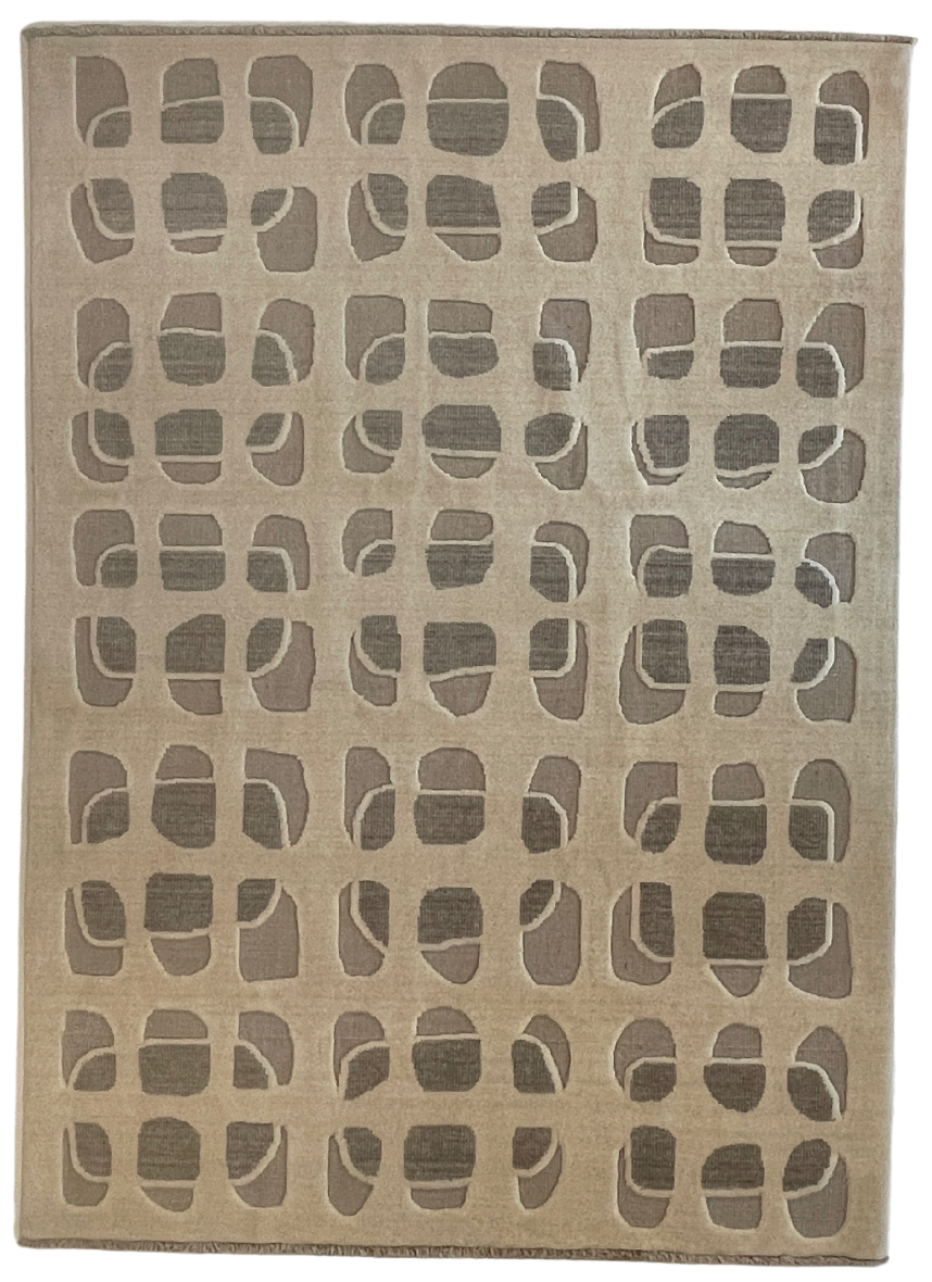 Der Nav Tile Teppich ist die perfekte Wahl für alle, die modernes Design und hochwertige Handwerkskunst schätzen. Handgefertigt aus 100 % reiner Wolle, verbindet dieser Teppich natürliche Materialien mit einem zeitlosen Look. Sein geometrisches Muster in sanftem Creme und edlen grauen Akzenten sorgt für einen modernen, harmonischen Stil, der sich mühelos in verschiedene Wohnkonzepte einfügt.