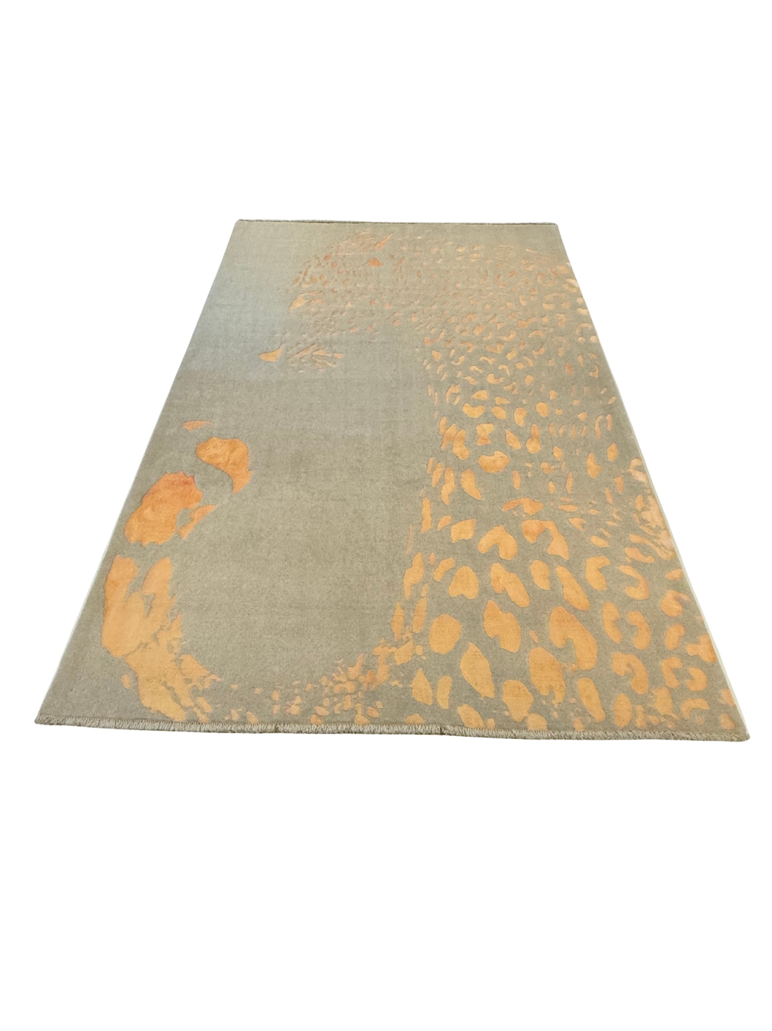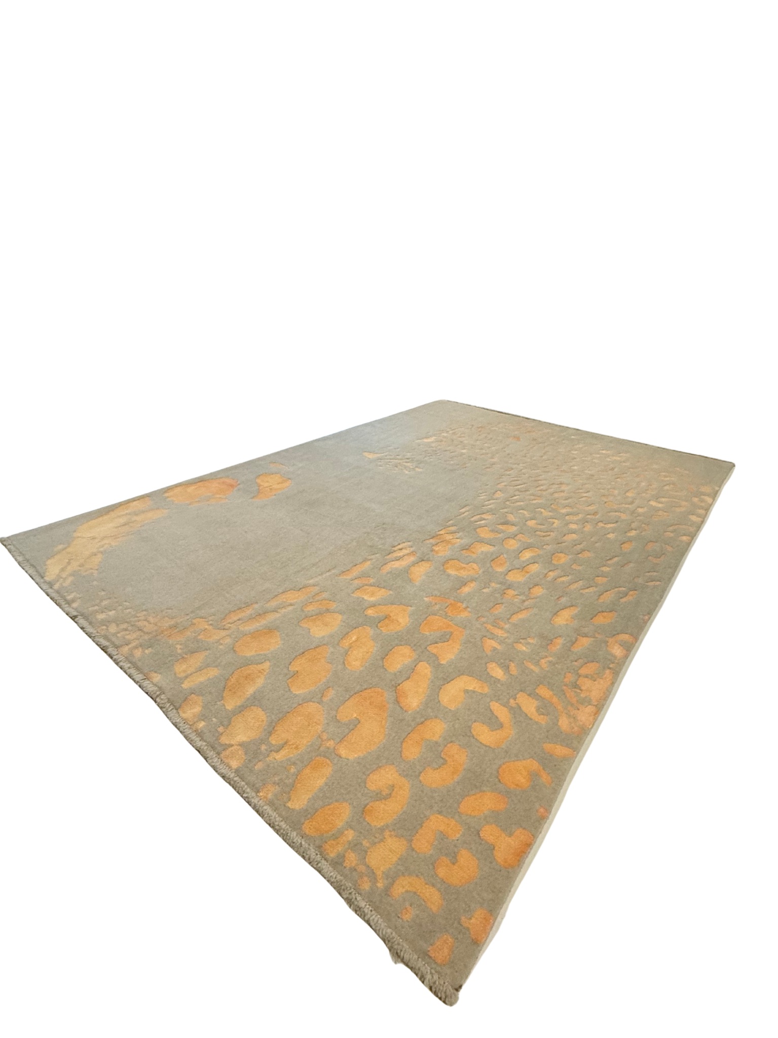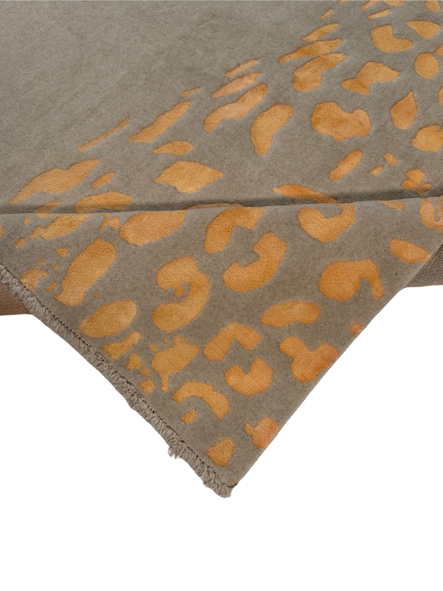 Der Prowl Teppich verbindet zeitlose Eleganz mit einem Hauch von Wildnis. Handgefertigt aus feiner Wolle und Kunstseide, zeigt er das abstrakte Muster eines Leoparden – ein Symbol für Stärke, Bewegung und natürliche Schönheit. Der sanfte graue Grundton harmoniert perfekt mit den goldenen Akzenten, die je nach Lichteinfall lebendig schimmern.