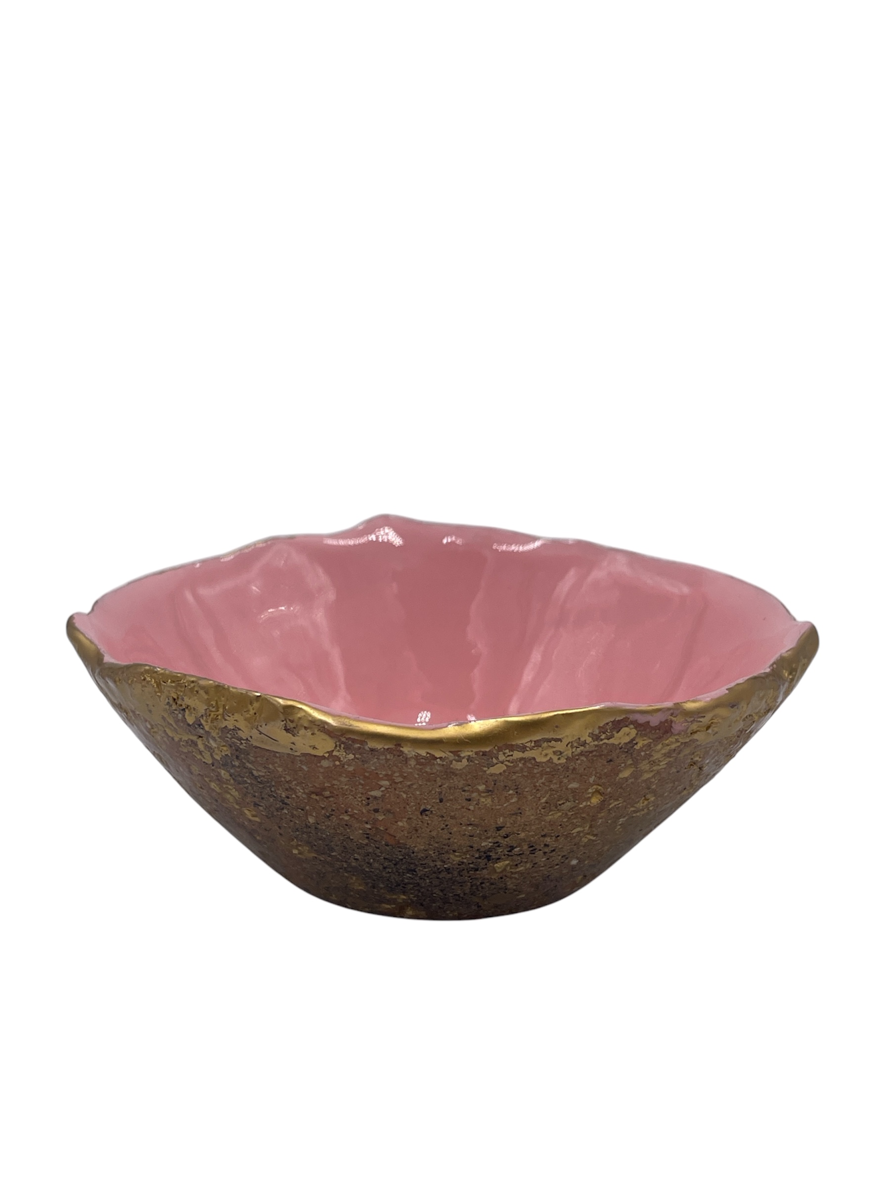 Die Rosé Mirage Keramik Schale ist ein wahrhaftiges Kunstwerk, das moderne Eleganz mit traditioneller Handwerkskunst vereint. Diese exquisite Schale besticht durch ihre organische Form, die mit einer luxuriösen Kombination aus glänzendem Rosé und rustikalem Goldrand abgerundet wird. Jedes Stück wird in aufwendiger Handarbeit gefertigt und ist daher ein Unikat mit individuellem Charakter. Ob als stilvolles Dekorationsobjekt, als Servierschale für besondere Anlässe oder als exklusives Geschenk – die Rosé Mirage Keramik Schale zieht alle Blicke auf sich. Ihre außergewöhnliche Farbgestaltung mit dem edlen Goldrand sorgt für einen Hauch von Luxus und hebt sich von herkömmlichen Keramikdesigns ab.