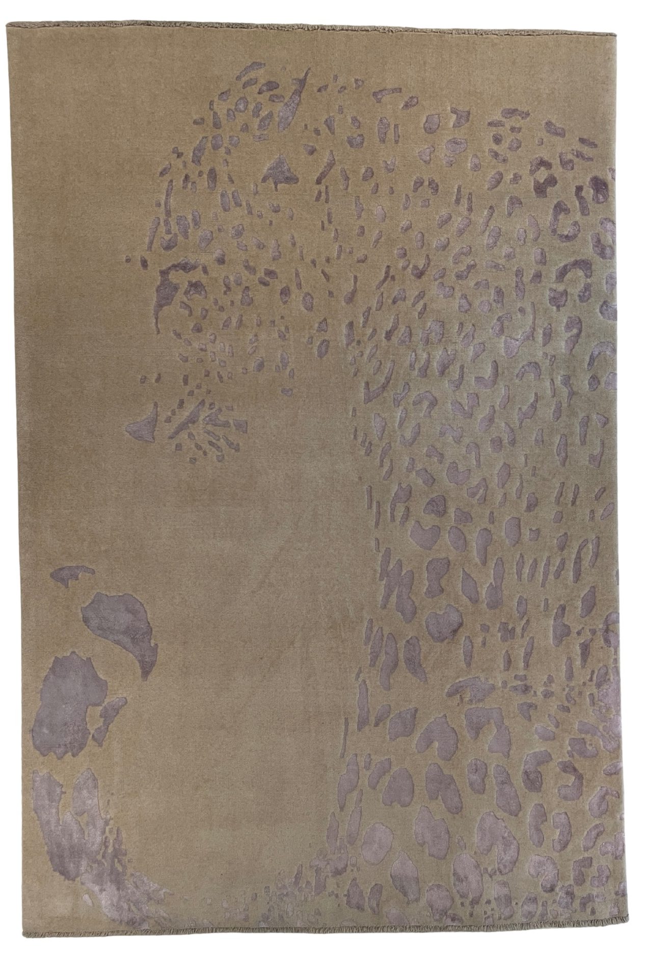 Der Yal Teppich vereint handwerkliche Meisterleistung mit modernem Design. Dieses außergewöhnliche Stück wird in feinster Handarbeit aus hochwertiger Wolle und glänzender Kunstseide gefertigt. Das Zusammenspiel beider Materialien verleiht dem Teppich eine luxuriöse Haptik und einen sanften Schimmer, der sich je nach Lichteinfall verändert. Mit seinem dezenten Leopardenmuster in warmem Beige und zarten Lilatönen schafft der Yal Teppich eine elegante, zugleich ruhige Atmosphäre in jedem Raum.